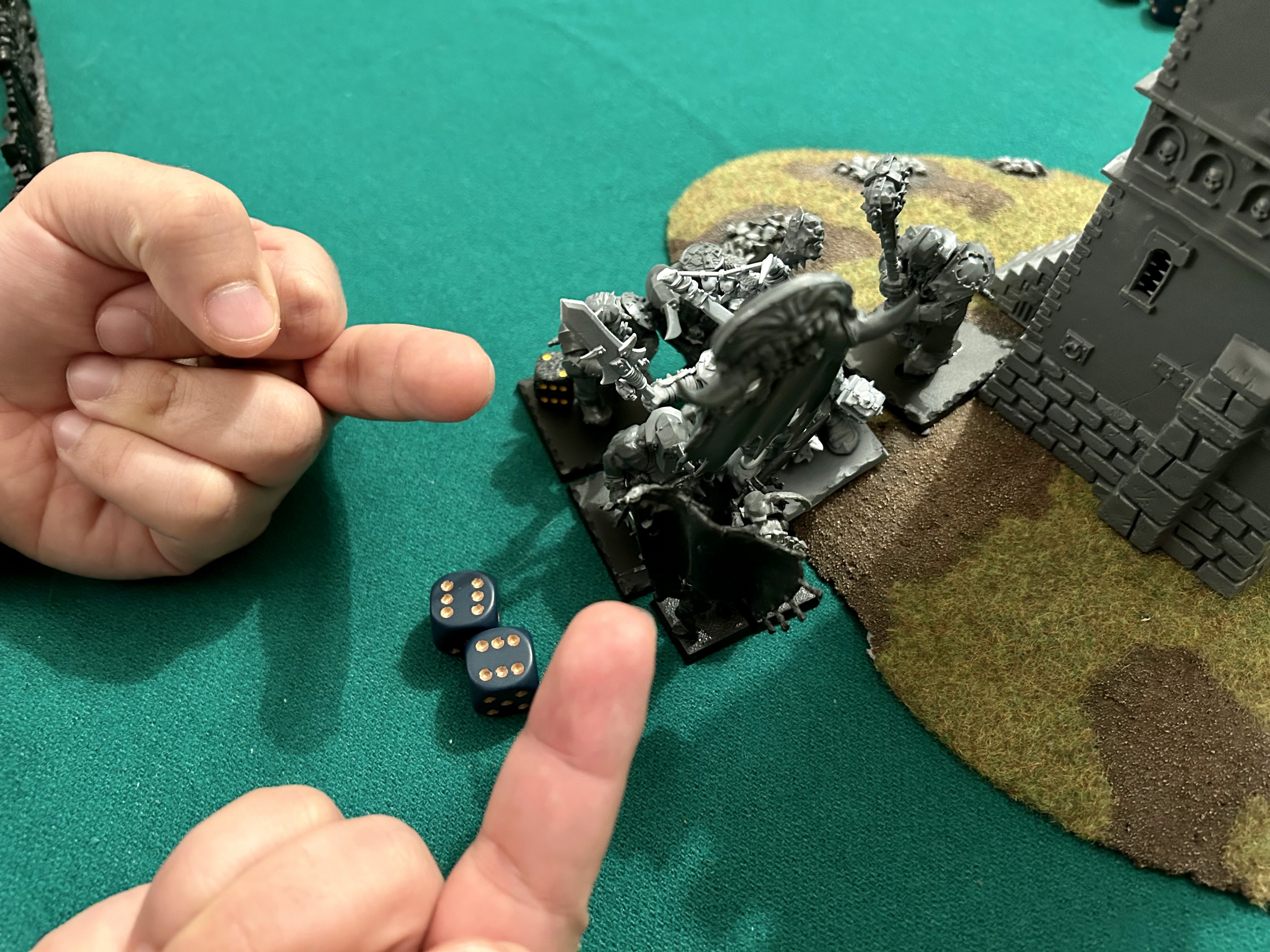 So, the first game of our campaign ended with a suffered victory for me. I lost both my core units, but Grimbeorn lost his entire army in battle. Our Crusade rules state that a unit destroyed in battle is automatically restored at its full strength before the subsequent game; however, we had to roll on the death chart for our characters.